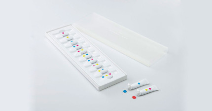 这些油彩包装上都没有标示颜色,原来这就是让小朋友更聪明的方法?你能认得几种颜色呢?