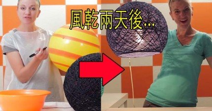 這名網路女達人把充氣球與毛線纏在一起,我就發現自己去大賣場買的燈罩真的遜掉了!