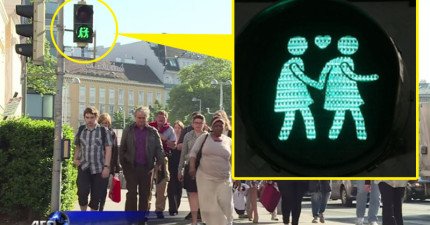 維也納路口亮起了超可愛同性戀紅綠燈號誌,紅燈的圖案真的太可愛了!