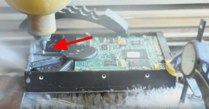 你想到水可能會覺得很弱,但當你看到這台水刀機器用高壓水把硬碟給切成兩半時…