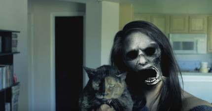 她用APP想跟貓咪臉對調但沒想到對調到最恐怖的臉孔!當她一回頭看時…