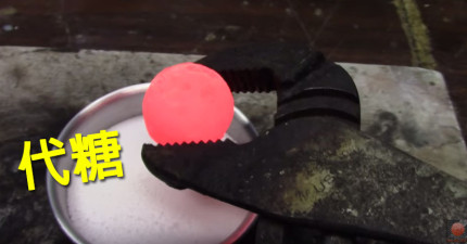 當把燃燒的鎳球放到代糖裡,怎麼會出現這樣的顏色?!