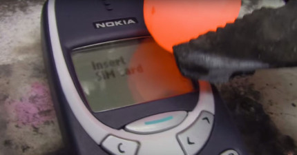 他將燒紅鎳球放在「無敵的諾基亞3310」上,結果蹦出了讓人超滿足的精彩畫面!