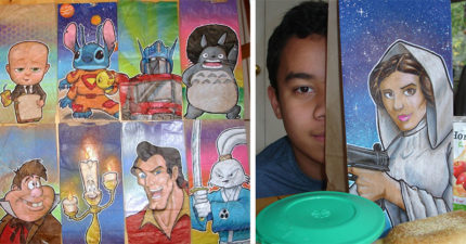 為了拯救兒子…爸爸每天花1小時畫出「最美午餐紙袋」 4年畫了550個!(20張)