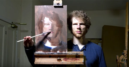 超強藝術家站在鏡子前面「反著畫肖像」,最後看到可以跟梵谷匹敵的神作! (影片)