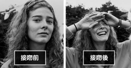 9張會讓你嘴角上揚「跟陌生人親吻後的反應」感動對比照!