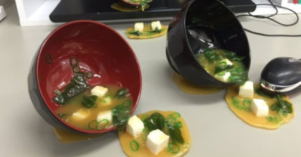 日本最奇特的超真實「打翻的味噌湯」手機架,手機一架上去被瘋狂掃光!