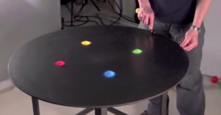 這個藝術家在桌上放了4團彩色沙子,然後開始振動桌子…WOW!