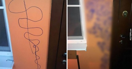 她的孩子把好好的墙壁毁了,她用最有创意的方法修复墙壁。
