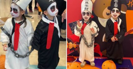 龍鳳胎萬聖節扮「小小黑白無常」 「卸妝後顏值超高」媽媽也是大正妹