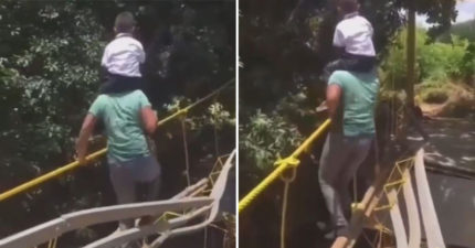 抱兒坐肩上走獨木橋…媽「腳滑踩空」男童慘墜溪谷 恐怖影片瘋傳