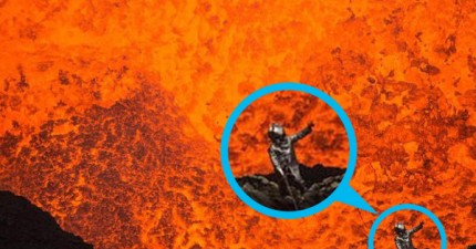 這位不怕死的冒險家,跳下一座正在爆發的火山口自拍。他說「這就是通往地獄的窗口」。