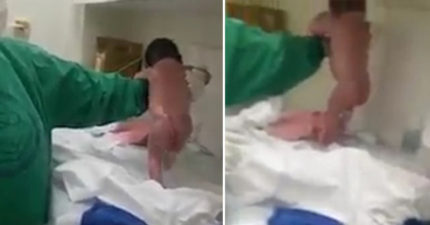 剛從媽媽身體裡出生的小嬰兒「站起來走路」,嚇壞在場的醫生跟護士們!