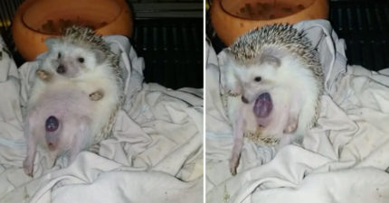 影/夫婦發現家裡的刺蝟在怪怪蠕動 看到「紫色的東西凸出來」馬上開香檳大慶祝!