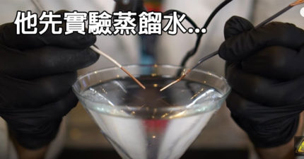 他讓你看到「自來水VS蒸餾水」跟電線碰到一起會有什麼不同的反應。自來水的結果會讓你嚇到發抖! (影片)