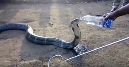 渴到快死眼鏡蛇被人「救援」,伸手拿水瓶過去時…