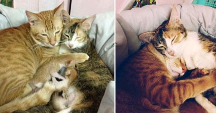 「通常不在乎孩子」貓爸在貓媽「產後」溫馨照顧家庭,#7戒備保護家人網友心都蒸發了!(8張)