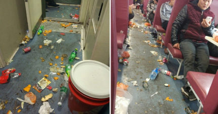 坐一次火車看清素質 地上「滿滿果皮廚餘」每個人都當沒看到!