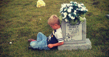 「超越生死心靈感應」小男孩跟一出生就死去雙胞胎弟弟對話,坐在墓碑旁說:「我今天開始上學!」
