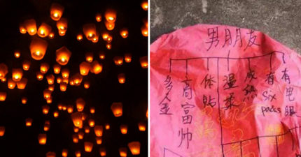 墜落的天燈上寫著複雜的「男友條件」,網友:「寫的已經不是人類了,當然飛不起來」…