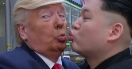 川普與金正恩出現在香港街頭「玩親親」和好,政治斷背山超狂!(影片)