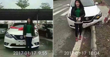 新車剛上路9分鐘直接「撞毀」,女駕駛超高EQ讓人大讚!