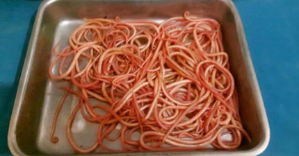 女子肚子痛嘔吐一個月腹中取出「150條」義大利麵巨蟲,「醫生拉出」影片超驚悚!