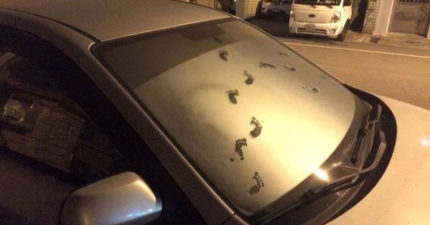 他被車上的「腳印」嚇壞,網友說:「俊雄又調皮了!」