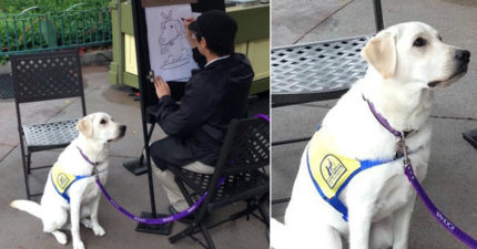 網友捕捉「輔助犬乖乖等畫家幫他畫Q版畫像」一動也不動 「超認真眼神」讓13萬網友讚爆!