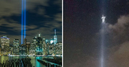 攝影師在拍911紀念燈的時候驚覺天上有個不明物體,照片放大後網友們都說「是天使!」