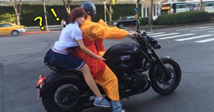 重機騎士載著「校服正妹」到處放閃,但網友仔細看照片後說「七月別嚇我啊!」