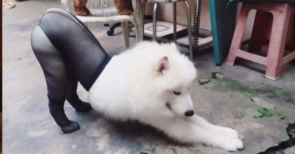 網友讓狗狗穿上了絲襪想知道看起來會是怎樣,「轉過頭超性感眼神」讓人無法直視!