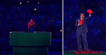 奧運的閉幕典禮上出現了一個大大的綠色水管,從中出現的瑪莉歐竟然瞬間變成日本首相!