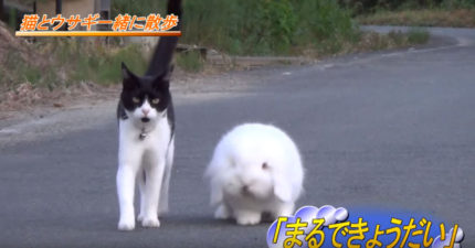 喵姐姐帶著胖胖兔弟弟出去散步,兔弟弟呆呆路上亂吃東西但姐姐溫柔耐性讓人萌翻了啦!