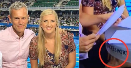 奧運游泳播報員被拍到在直播電視上竟然偷偷地在桌底下…