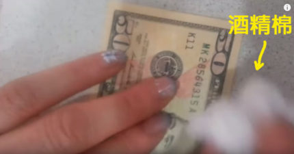 她拿酒精想要清洗這張$50鈔票,沒想到一擦下去後看到的「另一個數字」讓她當場嚇到抓狂…