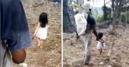 這名5歲小女孩天天都「牽著爸爸去工作」還以為他們感情好,但當爸爸一轉過身來大家都忍不住鼻酸了…