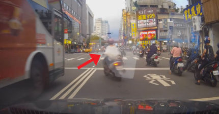 這名女騎士才剛剛差點被公車輾斃,沒想到下一秒又做了更瞎的事!