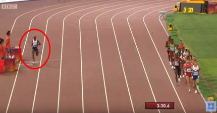 奧運雙料冠軍Mo Farah因為比其他參賽者快太多了,比賽到一半還跑到旁邊喝水降溫!