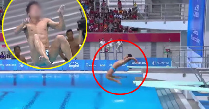 在國際賽事中,這位跳水選手縱身一跳…超不專業動作和臉部表情讓評審都要忍不住笑噴。