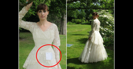 義賣商店收到這件象牙白婚紗,上頭發現的的浪漫小紙條造成了大轟動。
