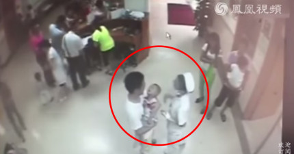 這間中國醫院的監視器拍到這名抱著孩子的中國男子狠狠踹剛轉身的護士一腳…?!