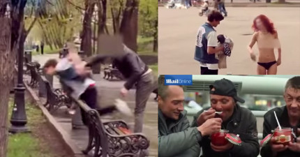 16岁俄罗斯富二代在公园里给流浪汉钱叫他们喝尿或脱光,结果其中一个狠狠揍了他一拳!