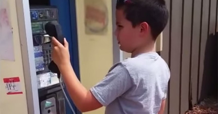 這男孩第一次看到公共電話回頭的超困惑表情,會讓你覺得自己真的真的老了!