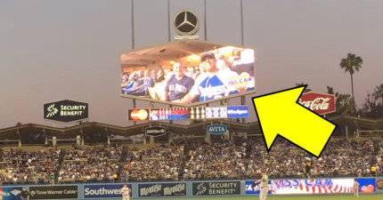 人們以為這對男士被「親親鏡頭」照到會尷尬地迴避,但他們接下來的舉動完全讓球迷高聲歡呼!