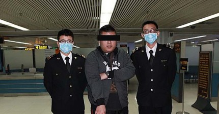 這名男子在海關讓安檢門響起還說謊是因為金手鐲。當把他衣服掀起來的時候…OMG!