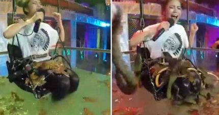「殺人KTV比賽」讓藝人泡在「青蛙、蛇、小鱷魚、爬蟲」裡唱歌!44秒開始只聽到尖叫…(影片)