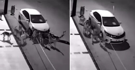 監視器拍到一群狗狗「報復」把一台車拆爛!咬爆後終於找到「千古仇人」! (影片)