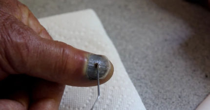 男子大拇指被砸到變紫色,拿燒紅的針「戳了幾下」爽度遠勝擠痘畫面!
