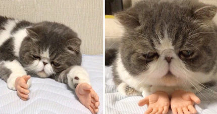 超不爽臉貓被「移植人類小手」引發網路暴動,超過11萬人轉發!